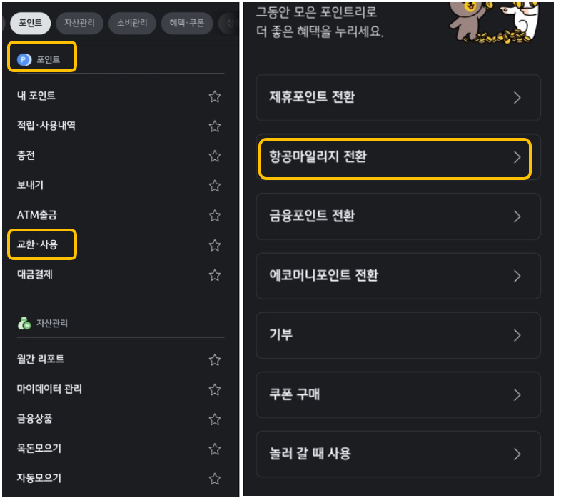 3️⃣ 엘포인트 대한항공 마일리지 전환
