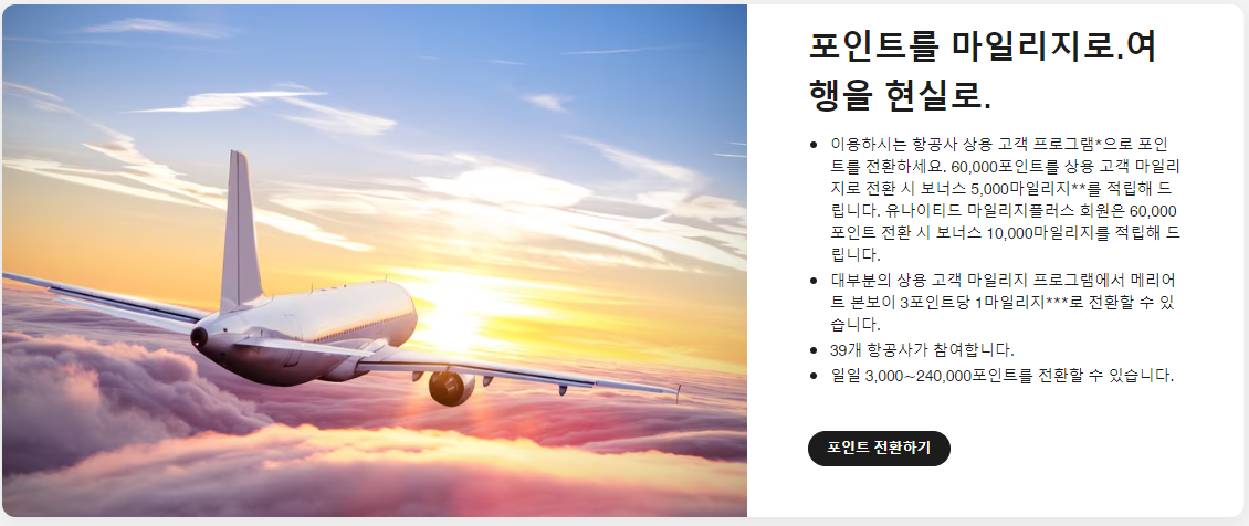✅ '메리어트포인트 3 : 대한항공 마일리지 1'의 비율로 마일리지 전환이 가능