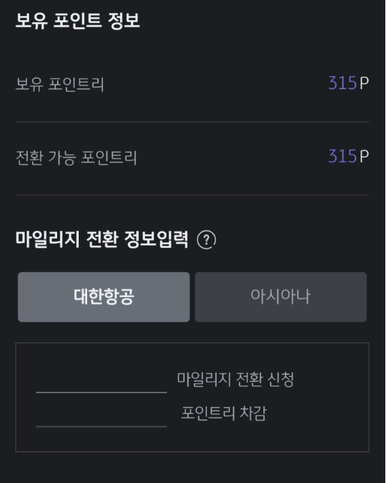 5️⃣ 하야트 포인트를 대한항공 마일리지로 전환