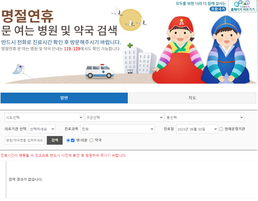 공휴일과 명절, 의외로 문여는 병원과 약국을 찾기가 쉽지 않습니다.