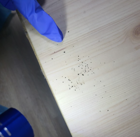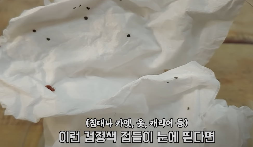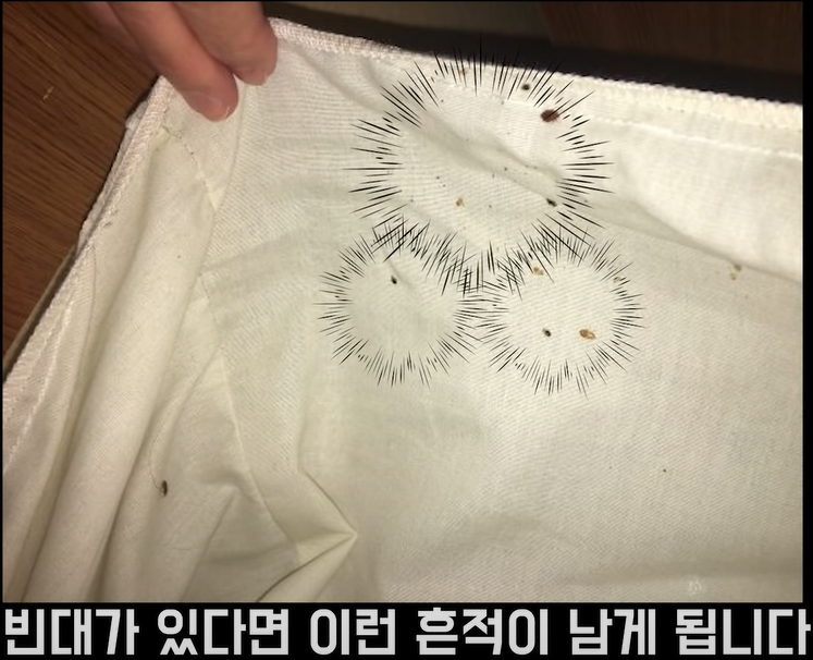 ✅ 빈대가 발견되지 않았더라도 침대나 가구 위에 작은 갈색 반점이 남아 있다면 의심해 볼 만하다. 빈대는 돌아다니면서 분면을 남기는 습성이 있기 때문이다.