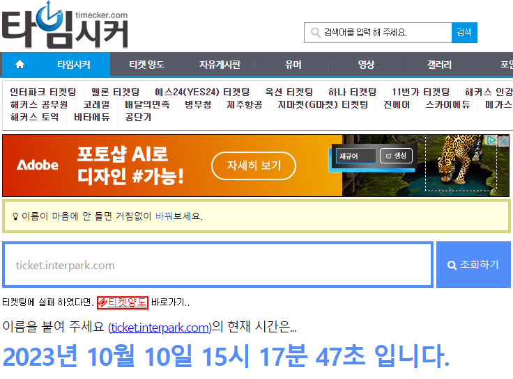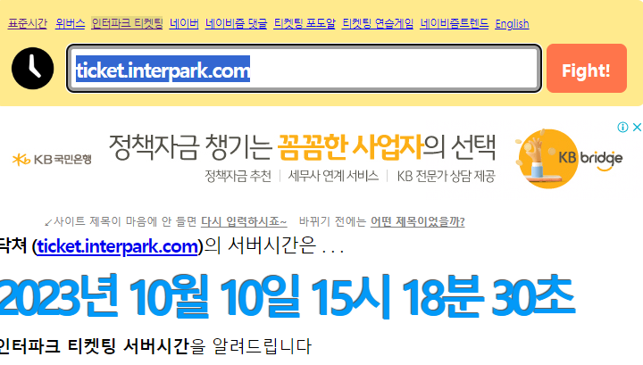 여러분이 지금 수강신청이나 콘서트 티켓팅으로 확인하고 있는 인터파크 티켓팅 사이트(ticket.interpark.com)의 서버가 갖고 있는 고유한 서버시간을 언제나 가장 정확하게 초단위로 알려주는 서버