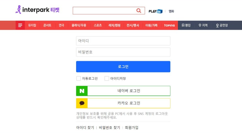 티켓팅이 시작되었는데 부랴부랴 로그인 하시는 분들은 아마 없으시겠지만!