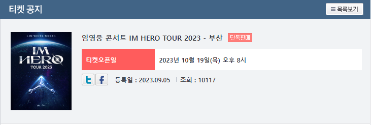 | 공연명 : 임영웅 콘서트 IM HERO TOUR 2023 - 부산 | |