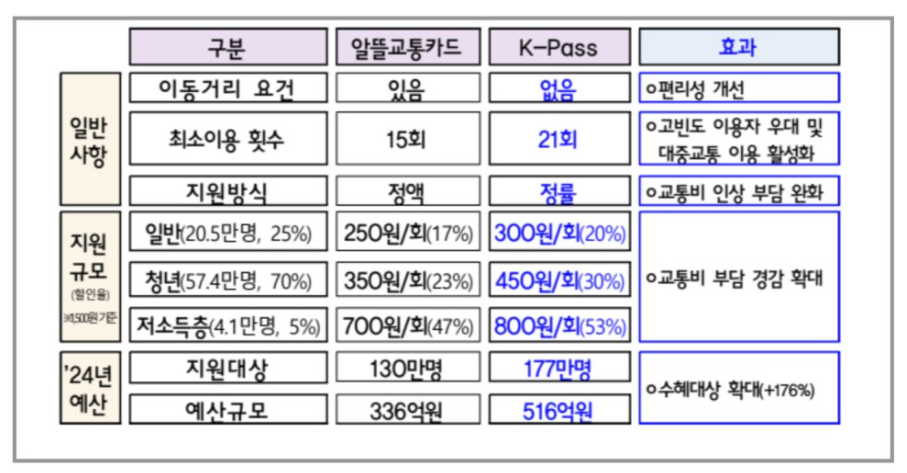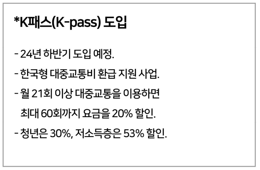 : 2024년 하반기(7월예상)부터 대중교통 이용 비용의 20~53% 절약할 수 있는 한국형 대중교통비 환급 지원 사업 K패스