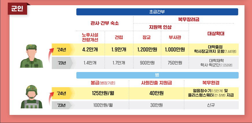 : 복무장려금 인상 및 대상 확대