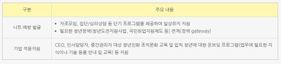 ✔ NEET 청년 플랫폼 신설