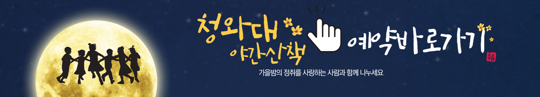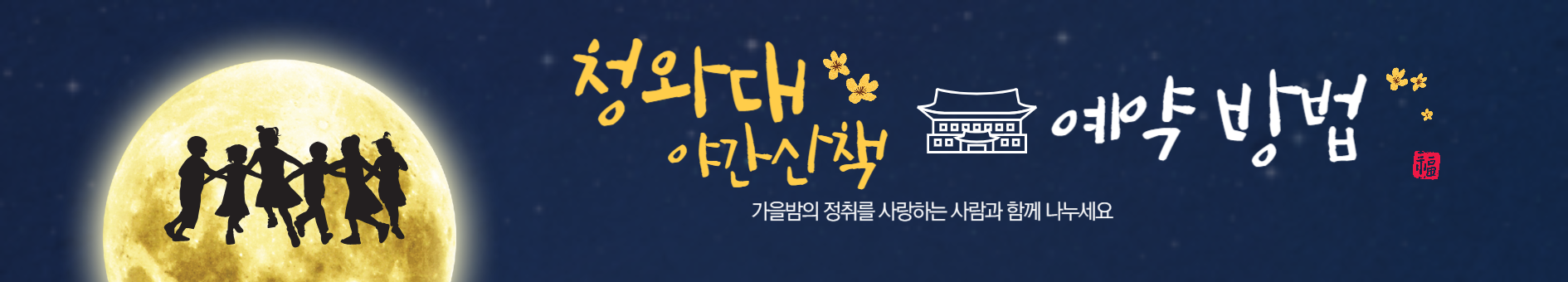 오후 7시 30분부터 청와대 정문을 통해 입장 가능합니다. 정문 대기 공간이 협소하니 행사시간에 맞춰 입장하시기 바랍니다.