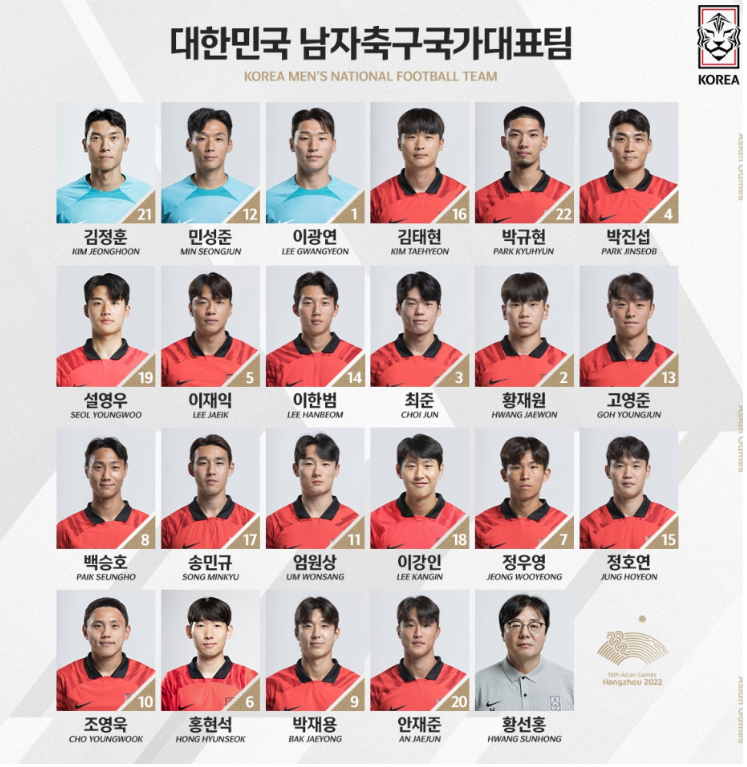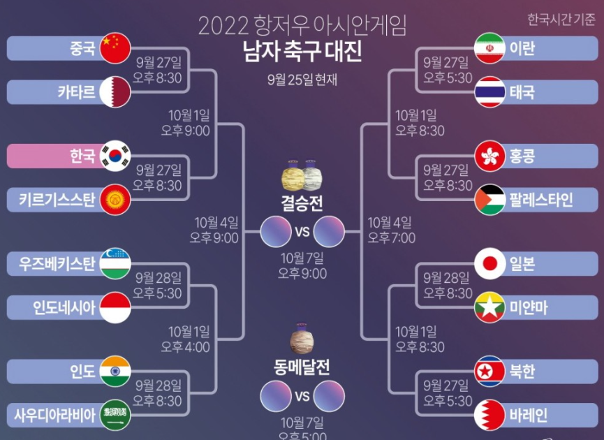[2022 항저우 아시안게임 축구] 16강 라인업