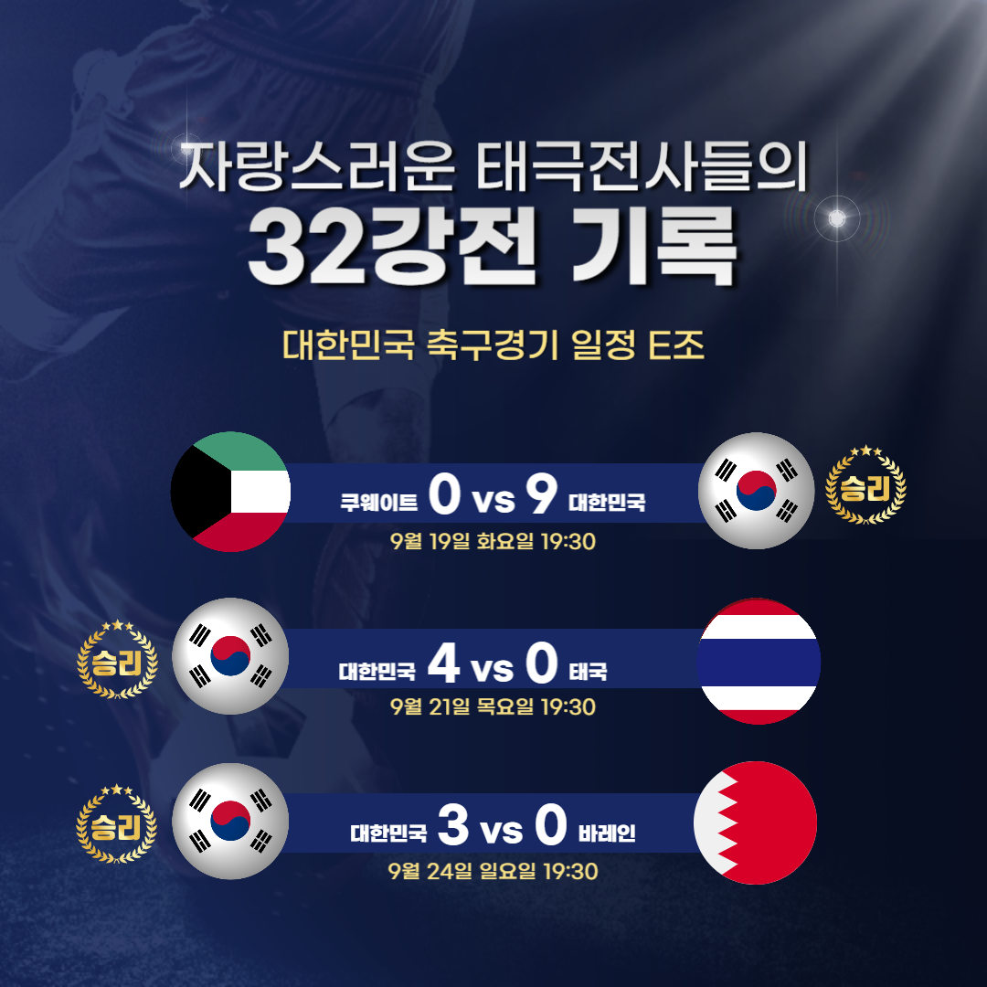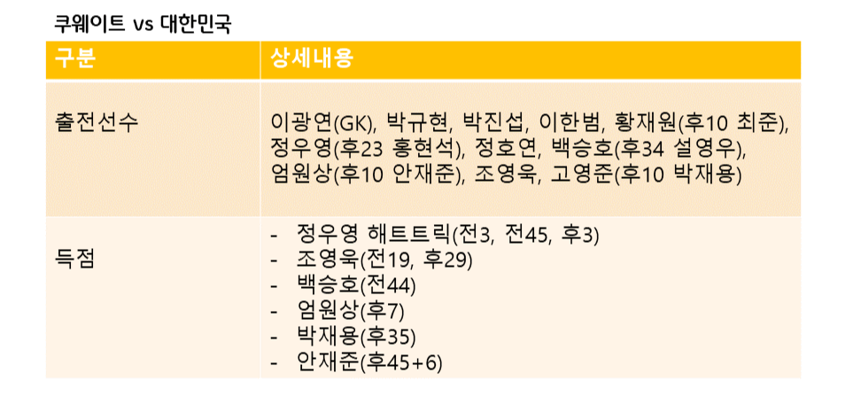 이번 예선 1차전에서는 쿠웨이트를 상대로 9:0 승리를 거두었습니다.