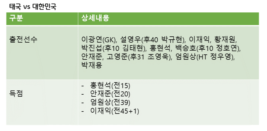 예선 2차전에서는 태국을 4:0으로 이기고 16강 진출을 확정지었는데요.