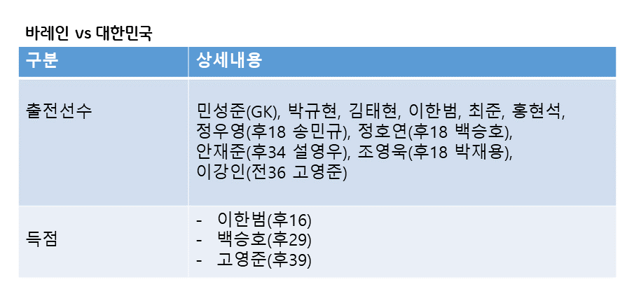 3차전 바레인을 상대고 또 3:0을 만들고 21개 참가팀중 최다골 기록을 세웠습니다.